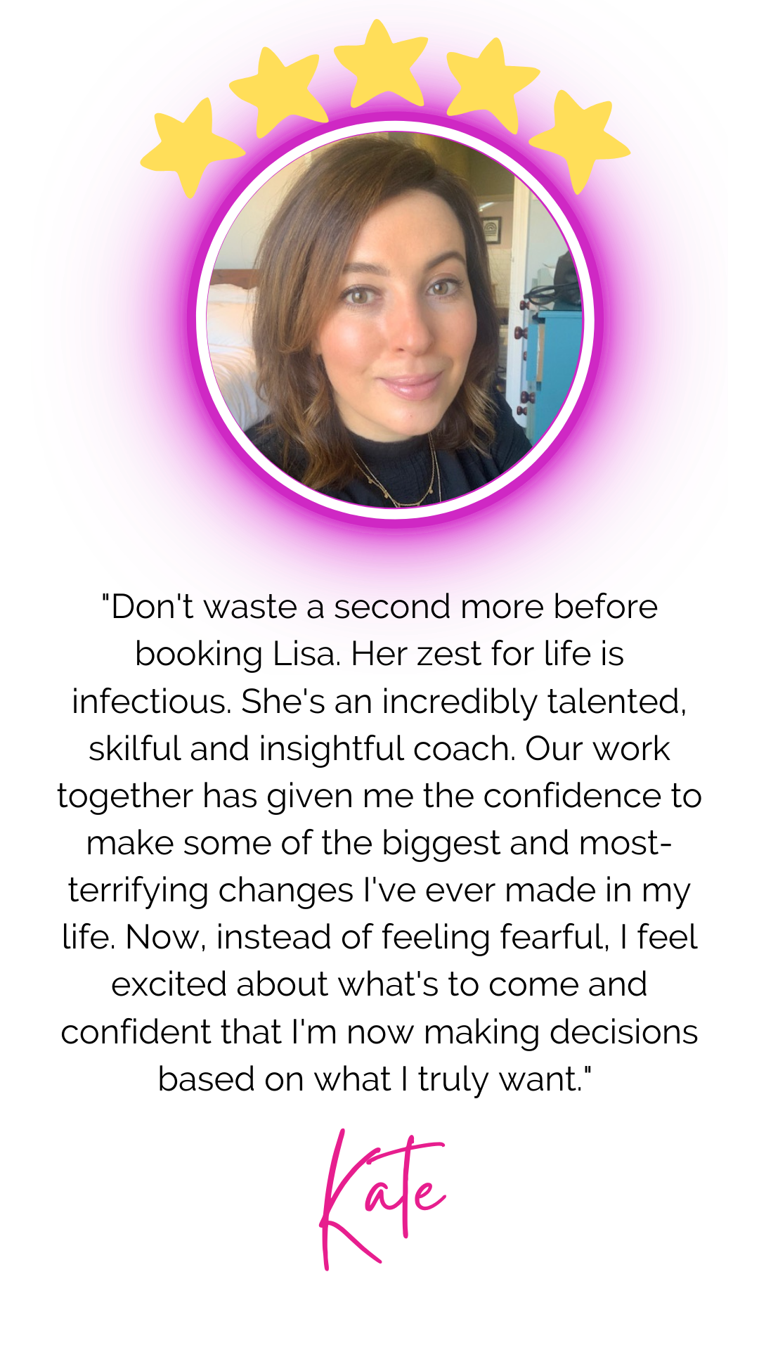 "As a coach, Lisa isn’t just knowledgeable, wise, and funny, she’s also extremely intuitive.