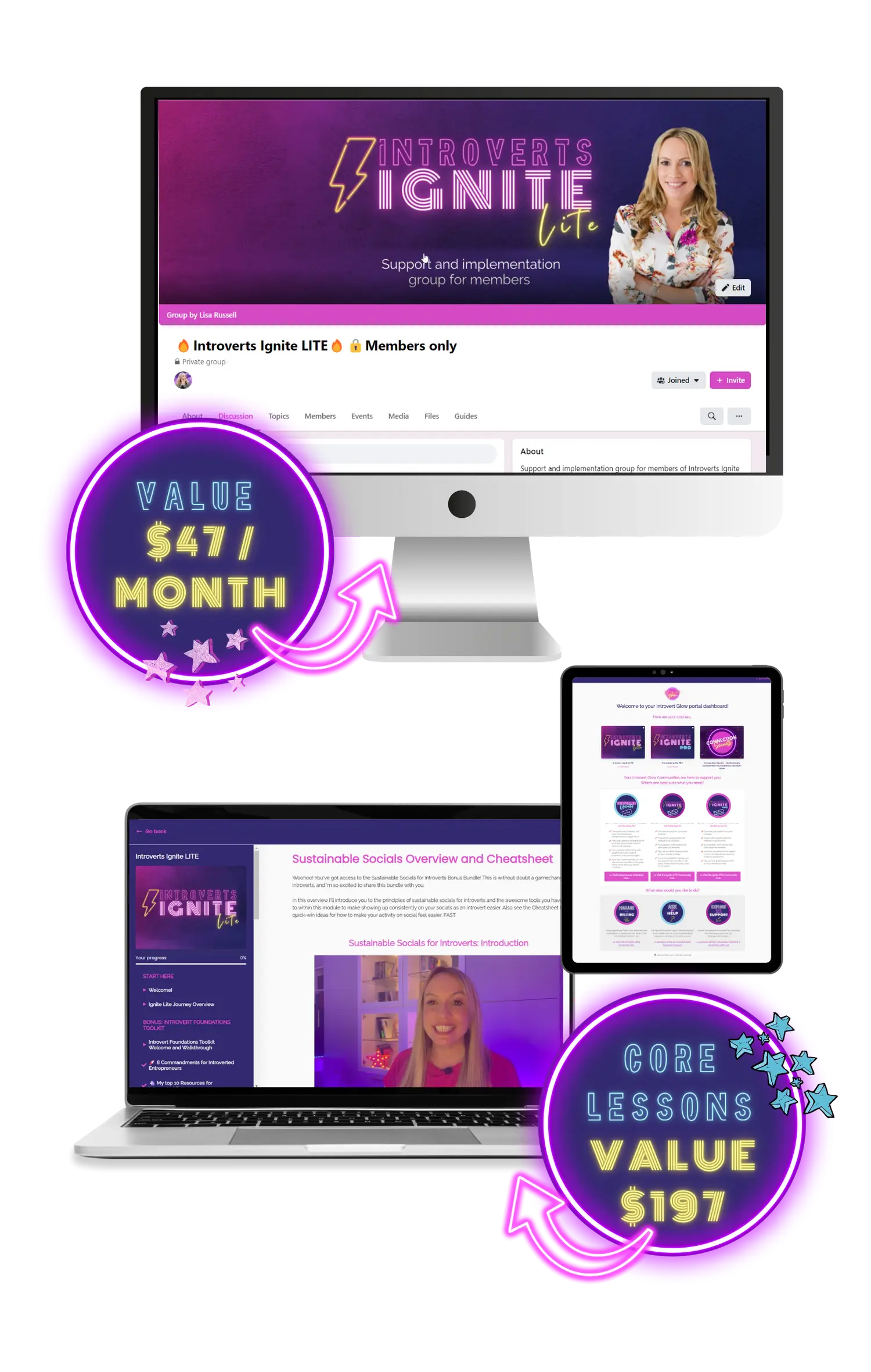 Everything in Introverts Ignite Lite is designed to be beginner and budget friendly. The training portal is easy to use and contains step by step training. Plus additional help is always at hand whenever you need it, in our private community, or for customer support issues, hello@introvertglow.com.