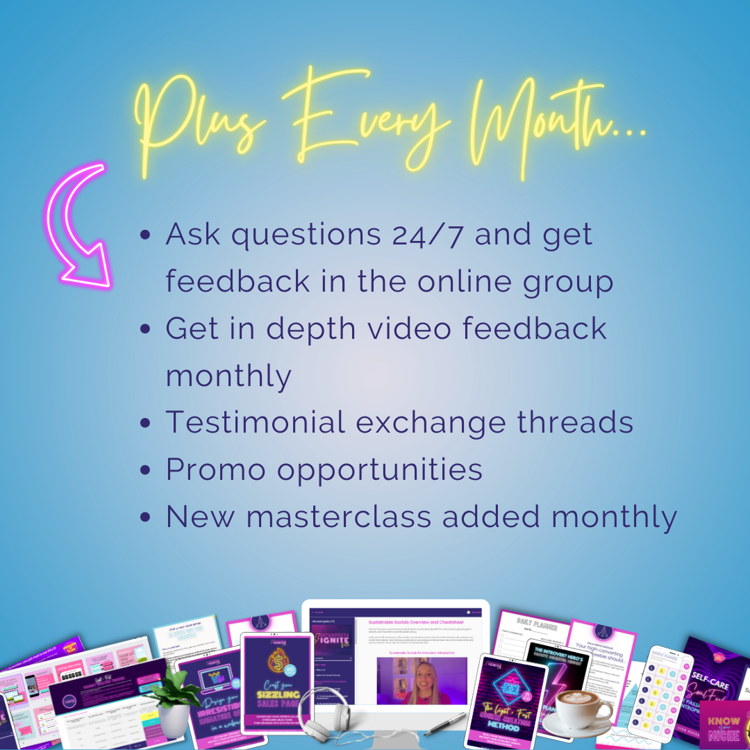 When you're making a regular income online, plus you're sure you vibe with the way I teach and the value I offer, then you'll be ready for Ignite Pro, the next tier, which will help you grow and scale your business to reach your big income goals.