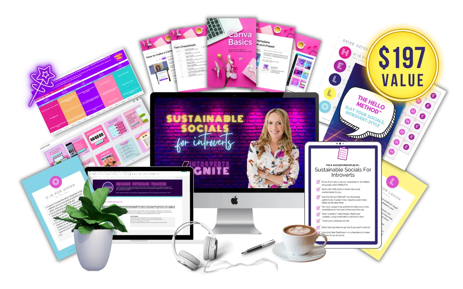 A powerhouse toolkit designed to reduce overwhelm for introverts trying to grow on organic social media: